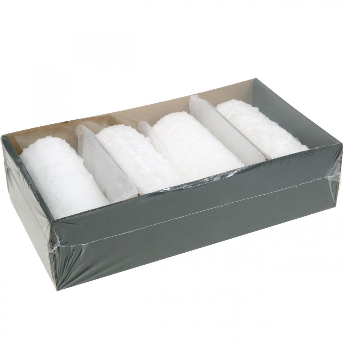 Die Adventskerzen kommen als praktisches 4er-Set. Damit sind sie perfekt für einen Weihnachtskranz geeignet. Sie können die Stumpenkerzen im Advent aber auch vielseitig für andere Kerzendeko einsetzen. Die Schnee-Kerzen sind wie gemacht für eine ansprechende Winterdeko!