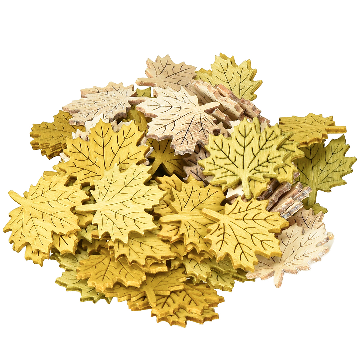 Sie erhalten die Ahornblättern zum Streuen in Naturfarben im praktischen Set zu 72 Stück, ausgeliefert im Kunststoffkarton. Von jeder Farbe, Grün, Gelb und Natur, finden Sie darin 24 Exemplare. Die Stärke der gestanzten Holzteile beträgt etwa 3 Millimeter, der Durchmesser liegt bei circa 4 Zentimetern.
