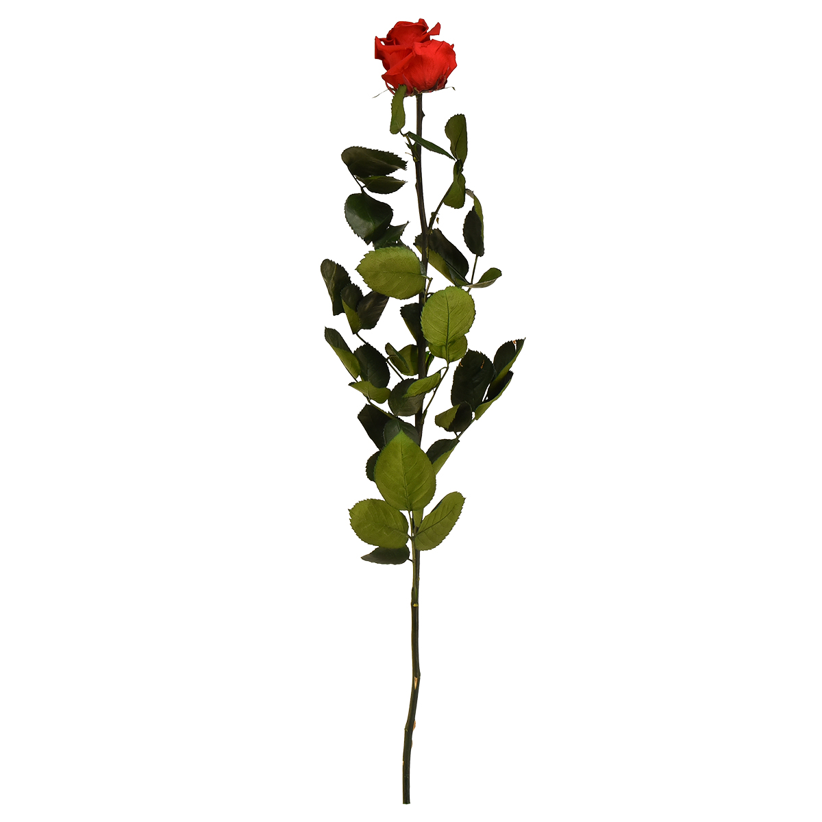 Infinity Rose mit Blättern Konserviert Amorosa Rot L54cm