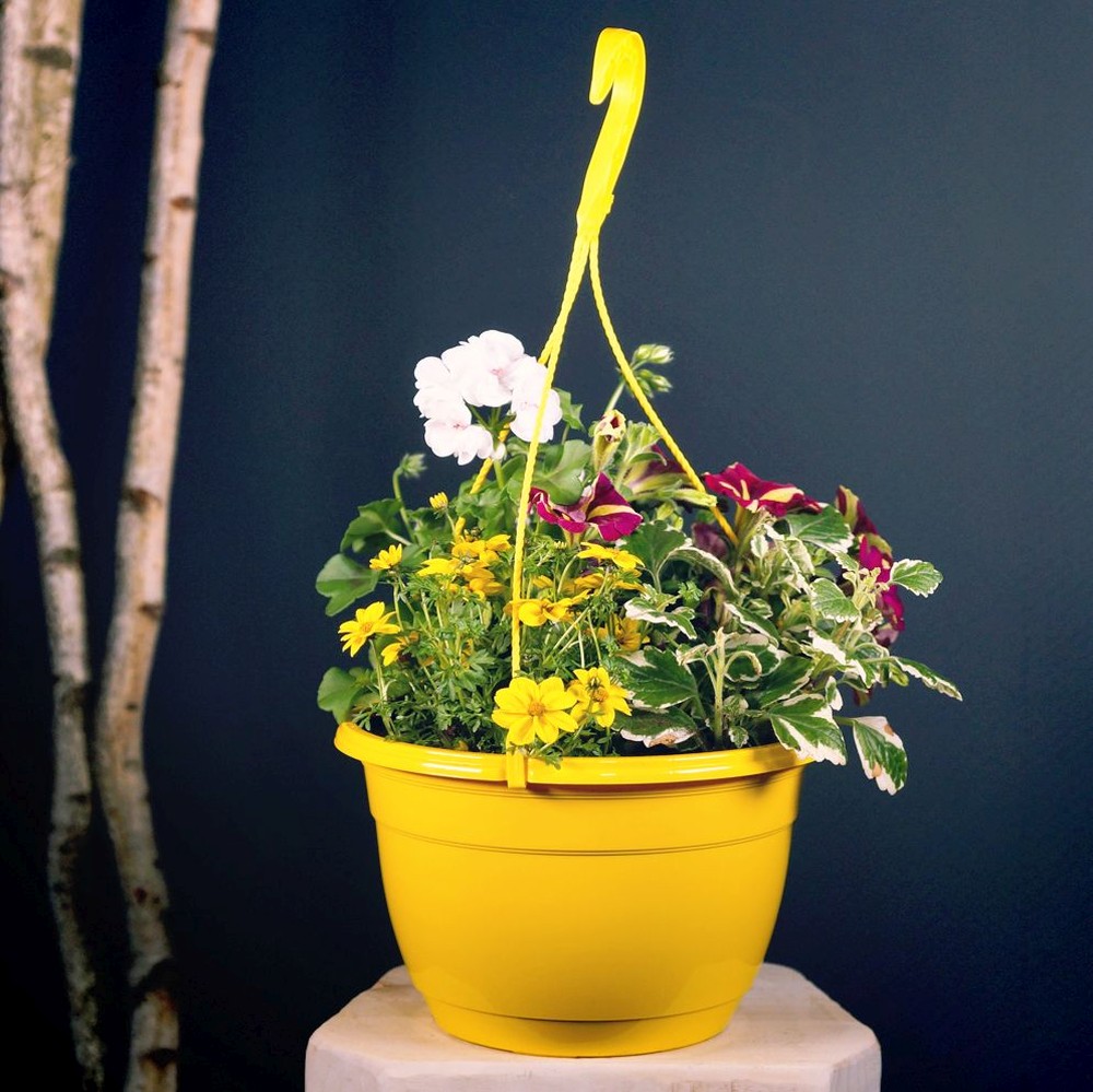 Blumenampeln und Aufhängesysteme vor direkter Sonneneinstrahlung schützen, sofern aus Kunststoff gefertigt.