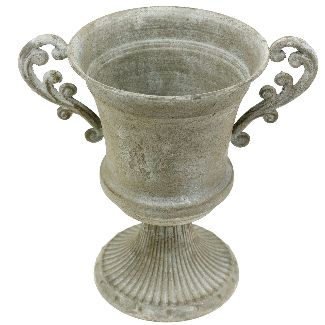 Bringen Sie Vintage-Atmosphäre in Ihre Frühlingsdekoration, indem Sie für Ihre Pflanzen den Antik-Pokal in Grau wählen. Stellen Sie sich vor, wie schön zum Beispiel Primeln auf Ihrem Balkon oder im Garten aussehen werden, wenn sie das Glück haben, in dieser hübschen Pflanzschale zu gedeihen! Die Metallschale mit ihren künstlichen Abnutzungsspuren und der klassischen Form scheint wie aus einer sehr fernen Zeit zu stammen. Man könnte meinen, die Pokalvase sei auf dem Dachboden entdeckt und zur Pflanzenschale umfunktioniert worden - das passt perfekt zum beliebten Shabby-Chic-Stil. Mit dieser eleganten Antik-Deko werden Sie Ihre Gäste beeindrucken!