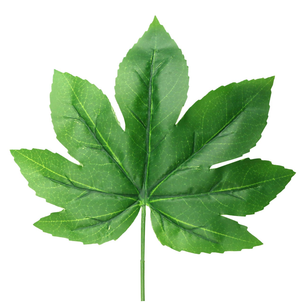 Die immergrünen Fatsia japonica besitzen gelappte Laubblätter charakteristisch ähnlich dem Ahornblatt. Die Blattränder der Aralienblätter sind grob gezähnt. Die künstlichen Aralienbläter mit Stiel besitzen tief siebenlappige Blattspreite. Die Blattadern haptisch aus Kunststoff Ende des Stiels angebracht. Darauf ist das Blatt aufgebracht und besitzt dadurch eine natürliche dreidimensionale Blattform. Auf dem Blatt sind die Blattadern nochmals sehr realistisch aufgedruckt.
