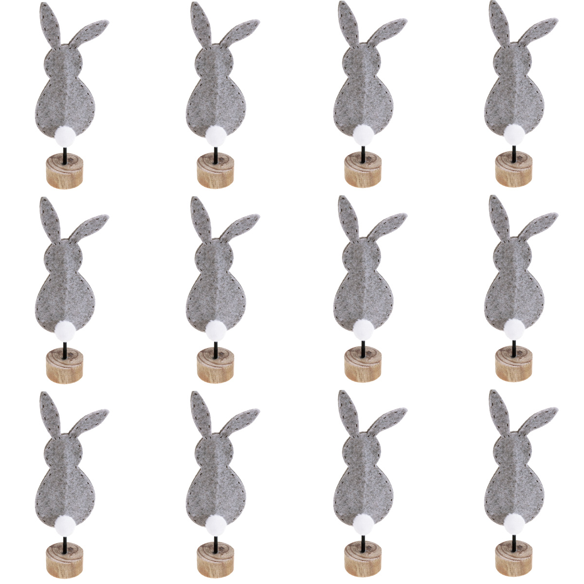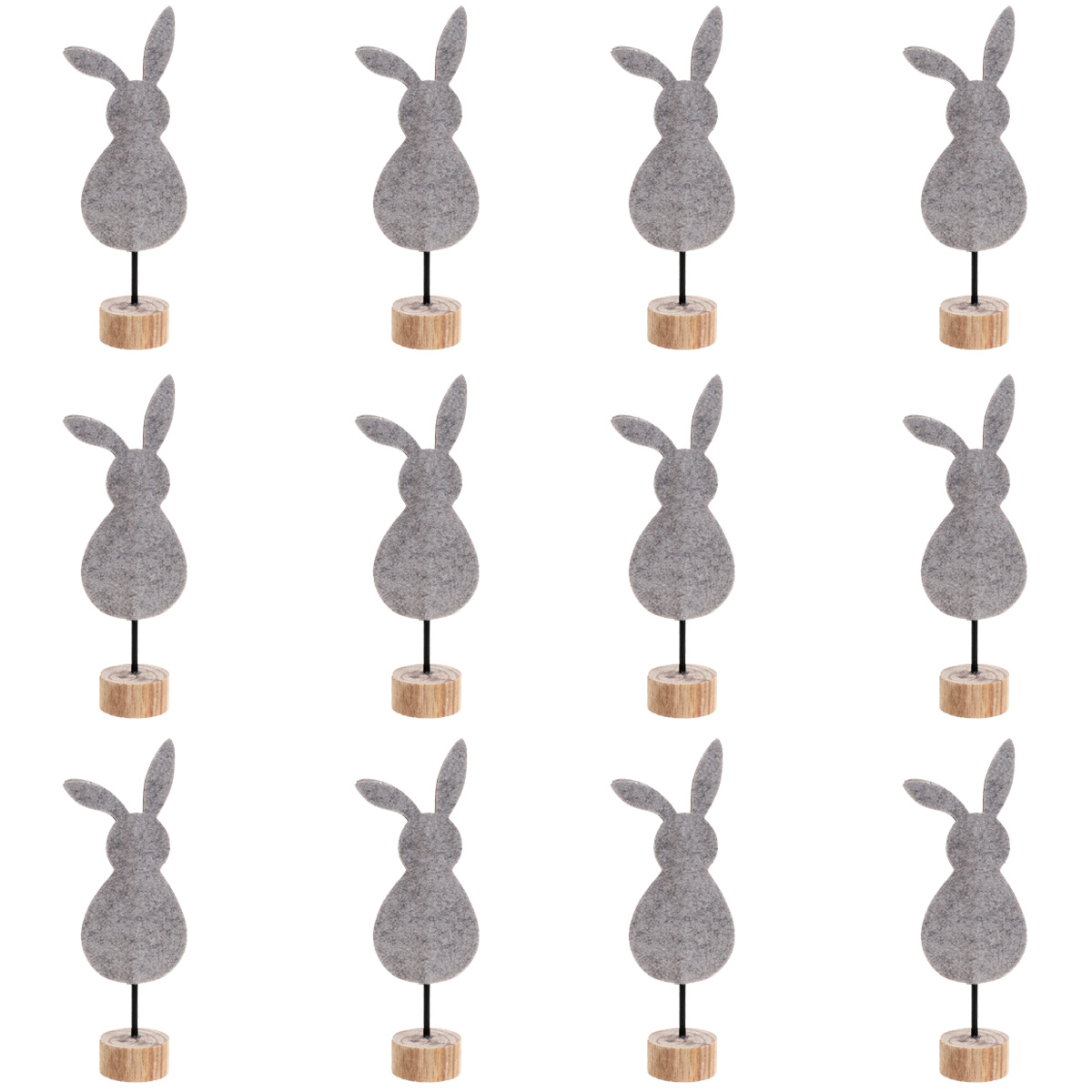 Aufsteller Tischdeko Osterhasen Deko Filz Grau 19cm 12 St