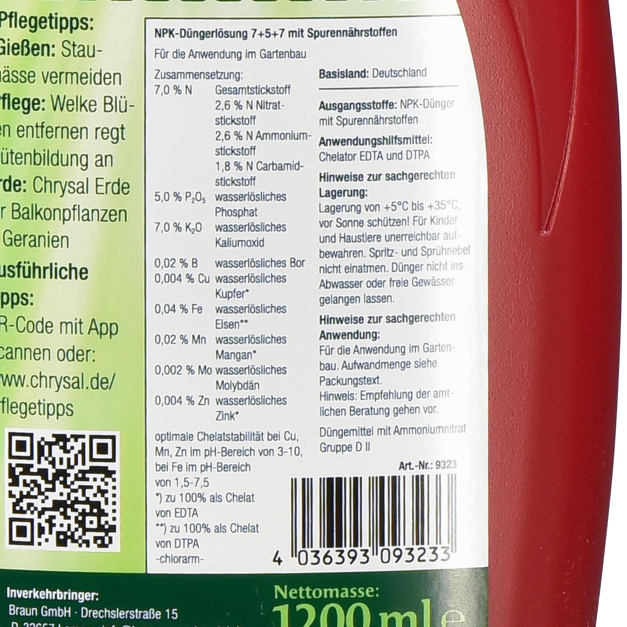 Produktname: Chrysal Balkonpflanzendünger und Geraniendünger 1,2l