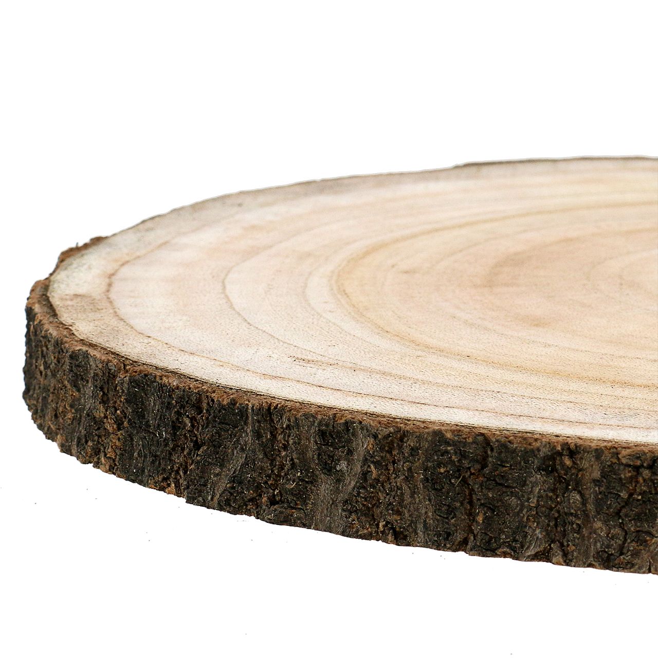 Das leichte Gehölz ist noch mit der authentischen Baumrinde versehen und besticht durch die gut erkennbaren Jahresringe. Für alle DIY-Freundinnen und Freunde bietet die runde Holzscheibe ein ideales Bastelmaterial, das vielseitig bearbeitet und dekoriert werden kann.
