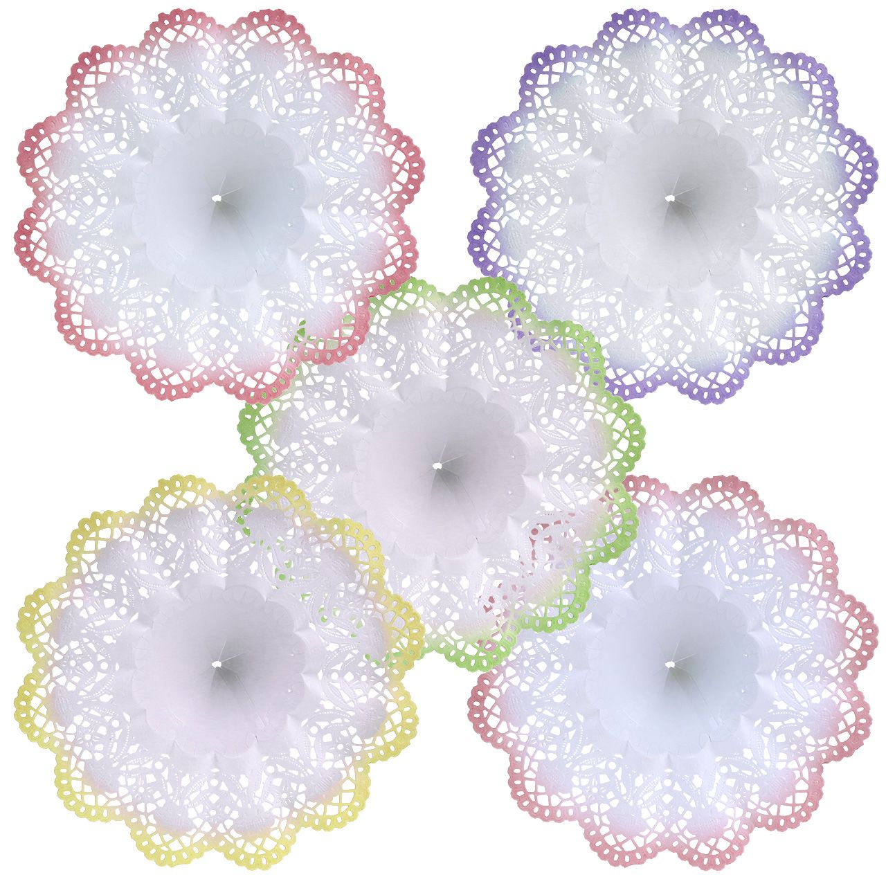 Da die 25 Blumenmanschetten, die Ihnen hier geliefert werden, nicht nur mit dem für sie typischen, zeitlos-schönen Stanz- und Prägemuster ausgestattet sind, sondern zudem noch über bunte Ränder wahlweise in Rosa, Grün, Lila, Gelb oder Altrosa verfügen, können Sie sich für jede Dekorationsarbeit die passende, leuchtende Farbe heraussuchen! So sieht zum Beispiel ein Valentinstagsstrauß in einer Biedermeiermanschette mit rosafarbenem Rand ganz besonders romantisch aus, während ein als sommerliche Schaufensterdekoration gedachtes Bukett in einer Manschette mit grünem Rand noch mehr Strahlkraft erhält.
