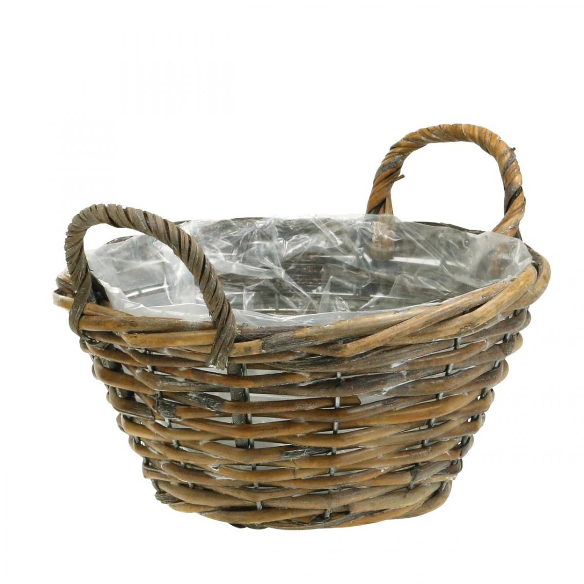 Produktname: Blumendeko, Holzkorb mit Henkeln, Pflanzgefäß Natur, Weiß gewaschen H12cm Ø24cm