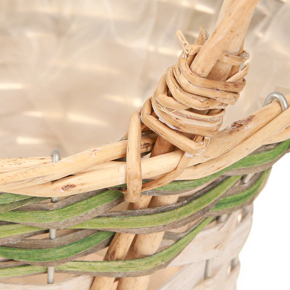 Der Blumenkorb mit Henkel im 3er-Set ist die ideale Wahl für alle, die ihre Tischdeko im Frühling und Sommer aufwerten möchten. Diese dekorativen Körbe sind nicht nur ein optisches Highlight, sondern auch äußerst praktisch. Gefertigt aus rustikalem Holzgeflecht, zeugen sie von exzellentem Handwerk und begeistern durch ihre Farben in Natur, Grün, Grau und Weiß. Die oval bis rund geformten Öffnungen und der lange Henkel machen diese Körbe vielseitig einsetzbar, ob als Blumenkorb oder Präsentkorb. Ein stabiler Metallgitterkörper, umsponnen mit hellem Holz, verleiht diesen Körben eine robuste Struktur. Weiß gewaschen und mit grünen und grauen Akzenten versetzt, wird jeder Korb zu einem stilvollen Mittelpunkt in der Raumdekoration. Darin vereint sich die Schönheit der Natur mit praktischer Funktionalität, ideal geeignet für Tischdekorationen zu Ostern, als Osterkörbe oder als rustikale Pflanzschale.