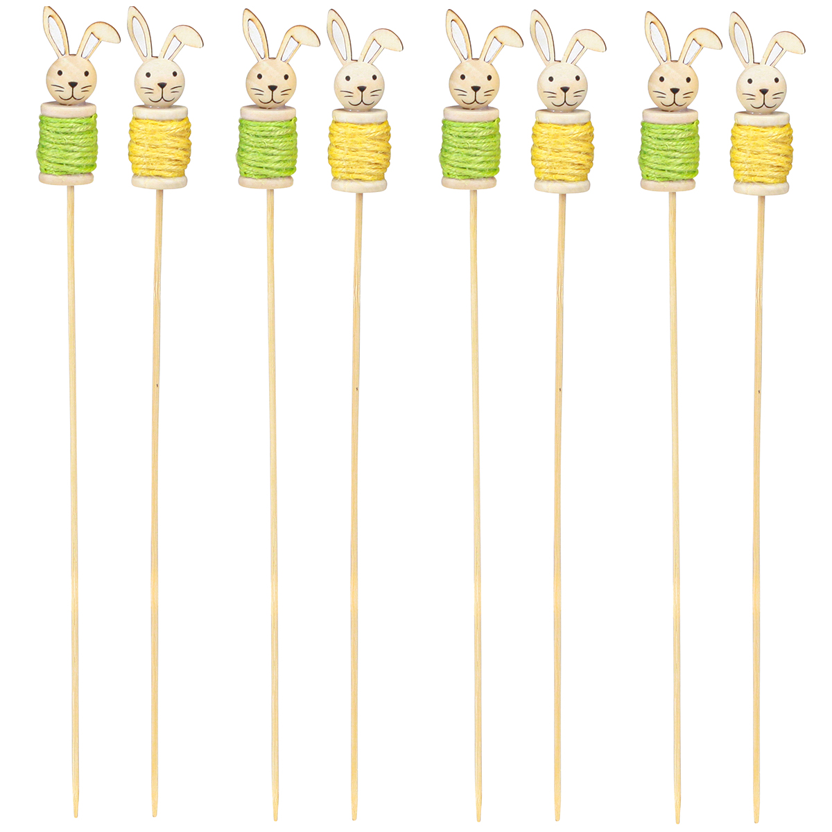 Blumenstecker Holz Ostern Osterhase Grün Gelb L32cm 8 St