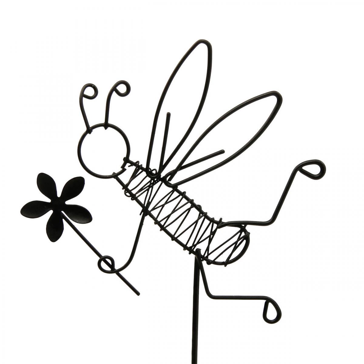 Auf den Blumensteckern aus schwarzem Metall sind die emsigen Insekten als Silhouetten dargestellt. Durch die Anordnung und Windungen des Metalldrahtes wurden viele kleine Aussparungen geschaffen, die der Sommerdeko hübsche Details verleihen.