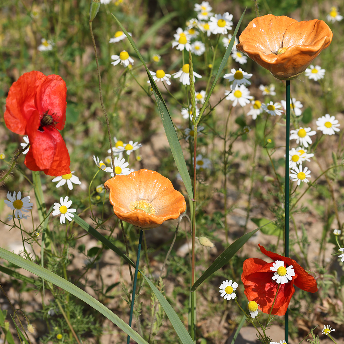 Mohnblumen stehen traditionell für Lebensfreude, Ruhe und Erinnerung. Die orangefarbene Variante, wie bei diesen Keramiksteckern, symbolisiert Energie, Wärme und Optimismus. Perfekt, um Ihrem Garten ein positives, einladendes Ambiente zu verleihen oder besondere Momente zu unterstreichen.
