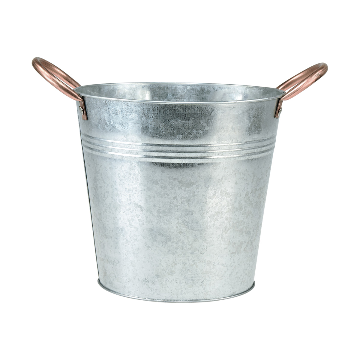 Als Blumentopf ist dieser Eimer mit Griffen eine ebenso einfache wie stilvolle Deko-Idee. Bringen Sie ein Stück ländlichen Charmes in Ihr Zuhause oder Büro und setzen Sie Ihre Pflanzen perfekt in Szene. Die Metall-Deko ist nicht nur äußerst robust, sondern auch ein echter Hingucker dank der attraktiven kupferfarbenen Griffe und des silberfarben verzinkten Körpers.