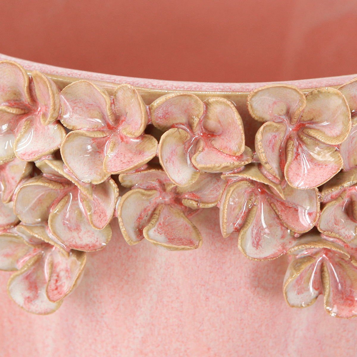 Blumentopf Keramik mit Blütenrand Rosa Ø19cm H16,5cm