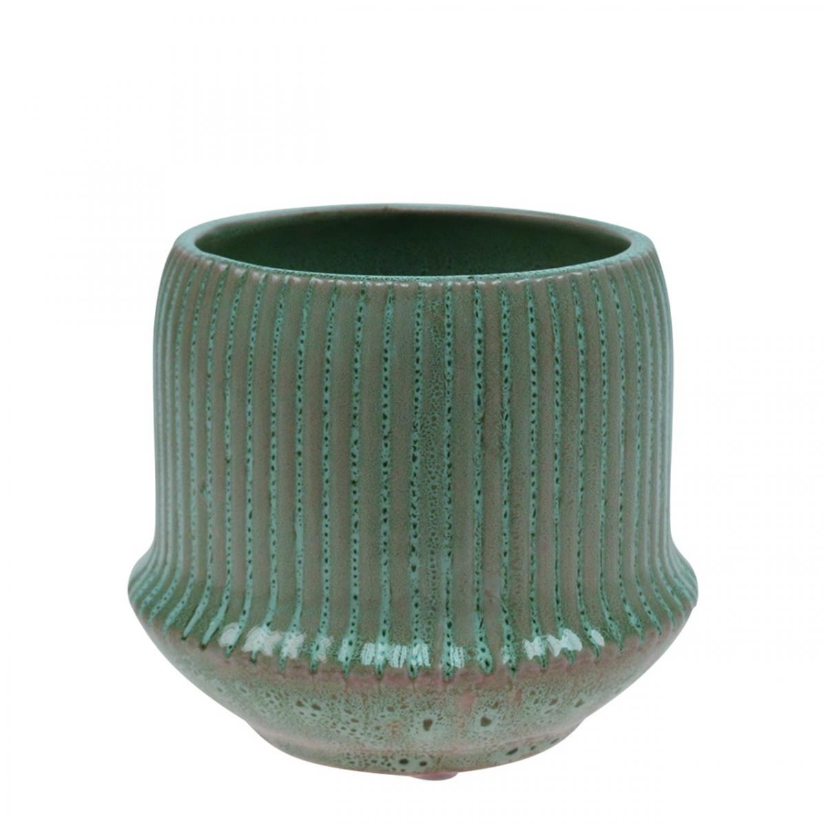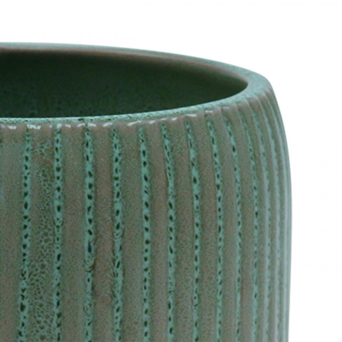 Blumentopf Keramik Übertopf mit Rillen Grün Ø12cm H10,5cm