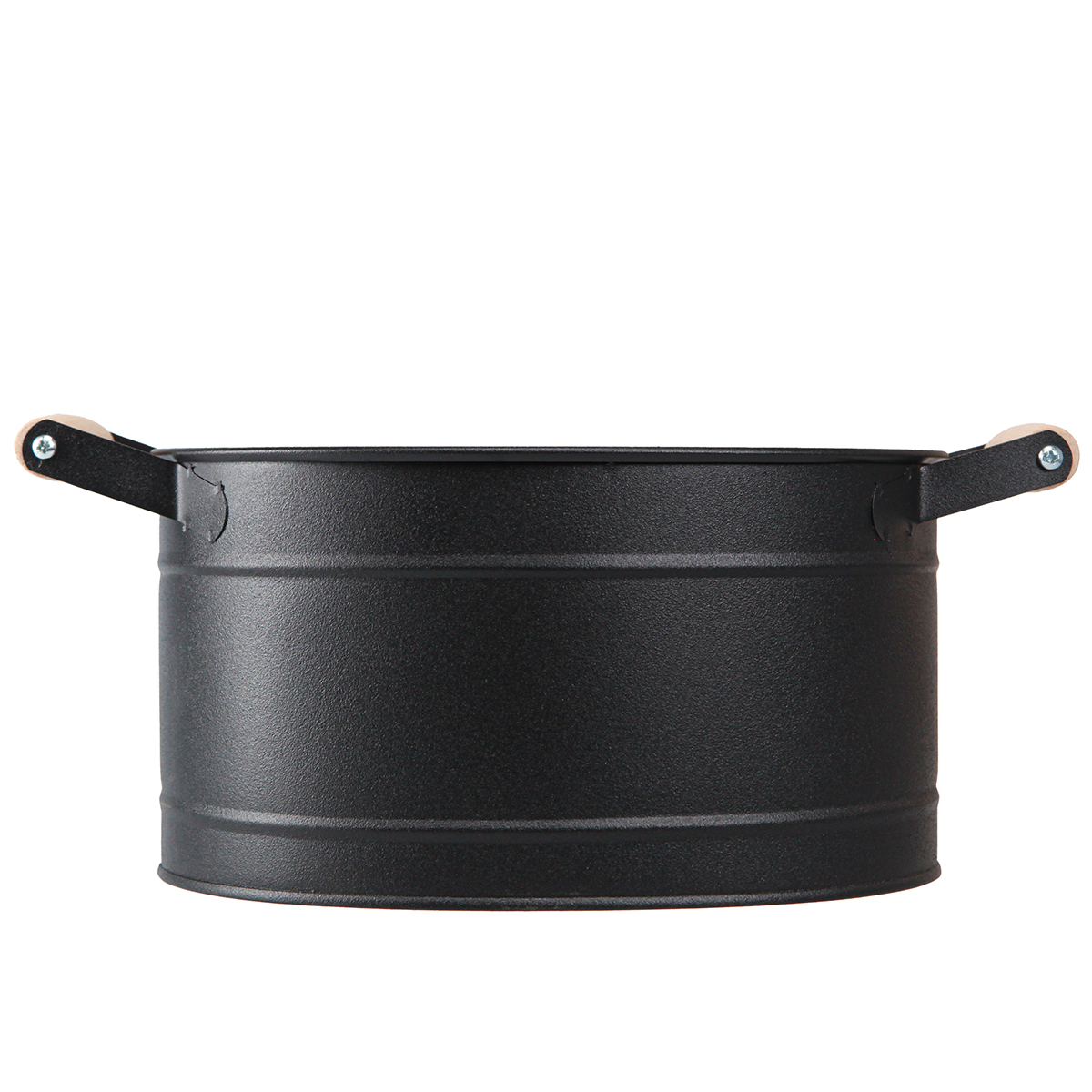 Blumentopf Metall Oval Griff Schwarz Natur 34x19,5x15cm