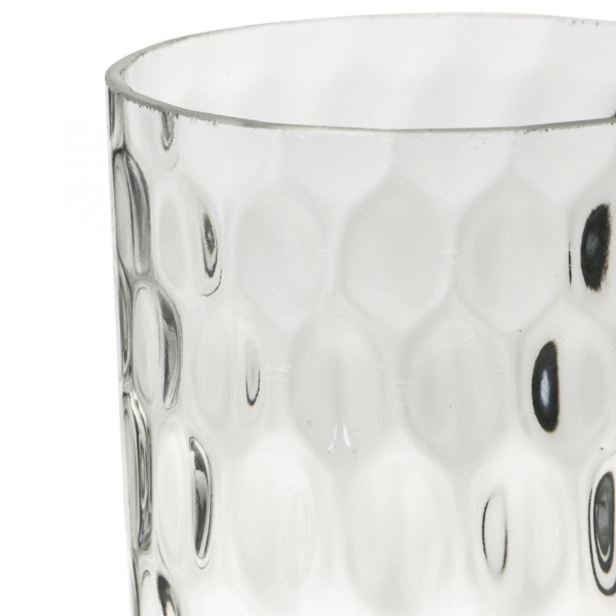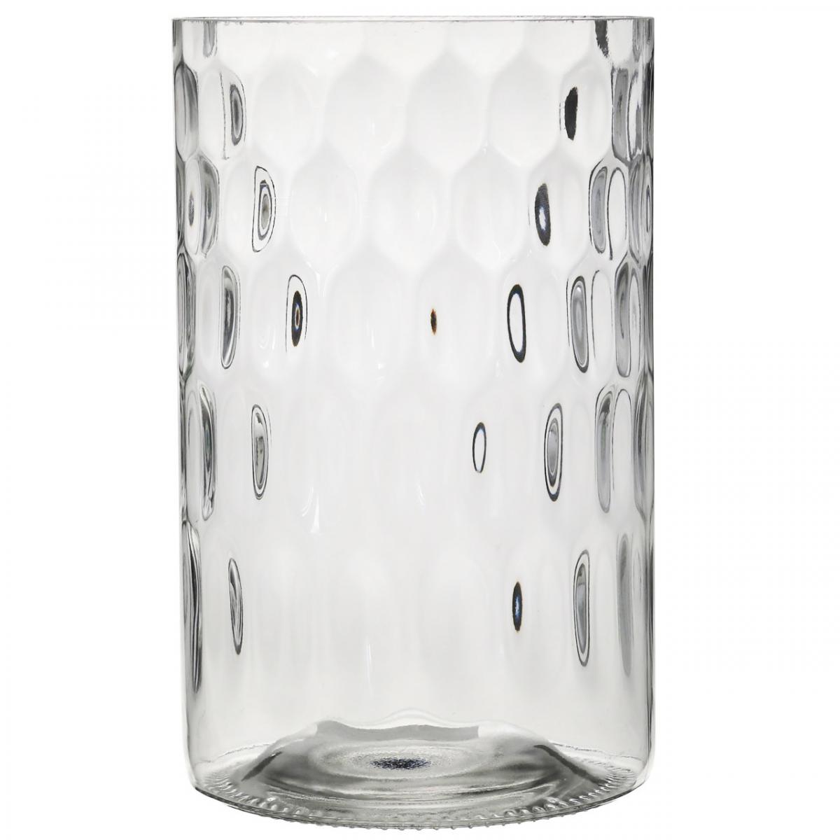 Diese Blumenvase ist ringsum mit einem schlichten facettenartigen Muster versehen. Die hohe Glasvase eignet sich vielfältig zum Aufstellen von Blumensträußen oder Trockenblumen-Bouquets, aber auch als Kerzenglas macht sie sich hervorragend!Bedecken Sie den Boden des Windlicht-Glases mit Dekosand, farbigen Steinchen oder natürlichen Muscheln. Schon haben Sie die Grundlage für eine stimmungsvolle Kerzendeko für viele Anlässe und Jahreszeiten. Setzen Sie nun eine hohe Stumpenkerze oder ein LED-Licht hinein, und schon wird das Kerzenlicht durch die Glasdeko tolle Lichtreflexe nach außen zaubern.
