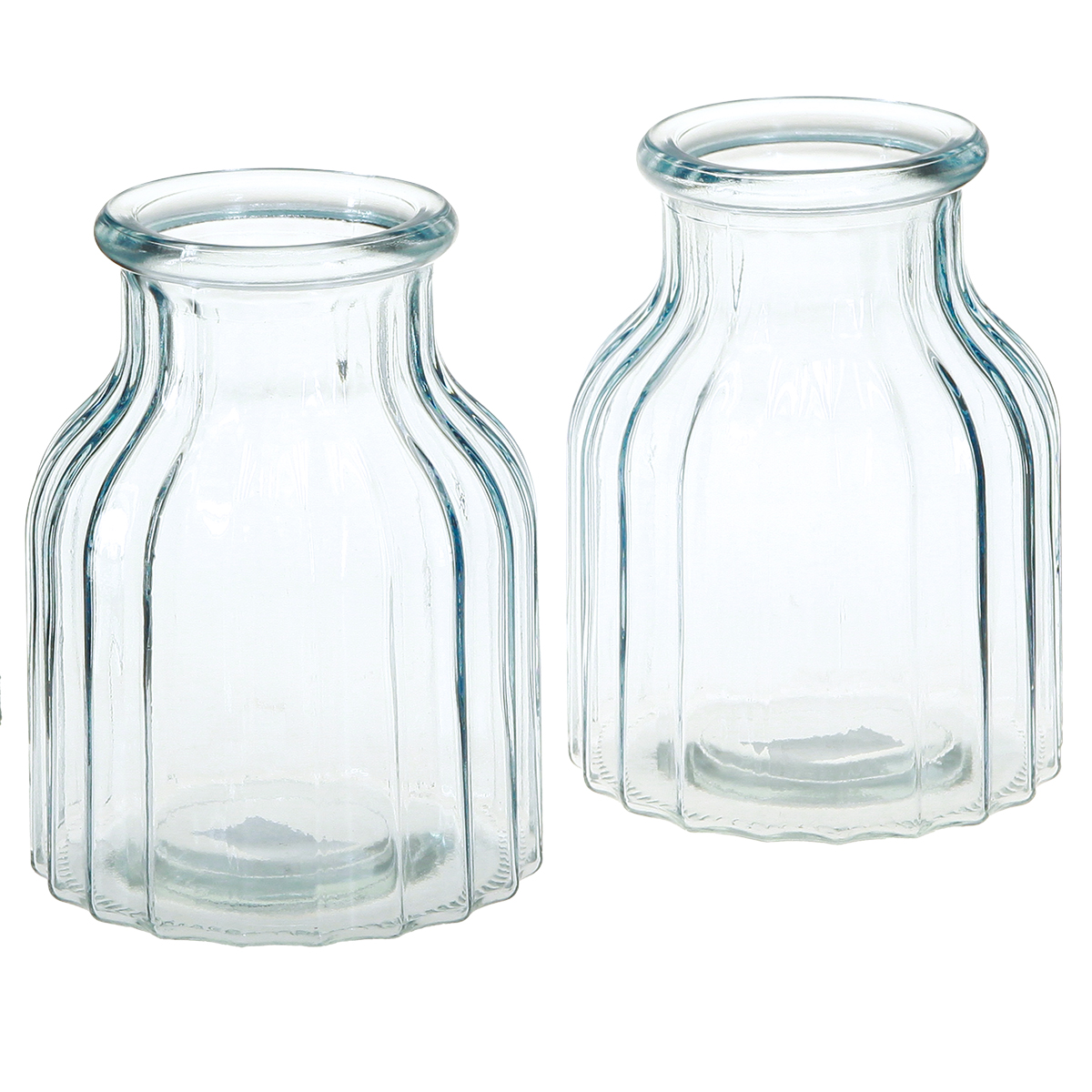 Blumenvasen Glas Rillen Design Blau Ø11cm H14,5cm 2St