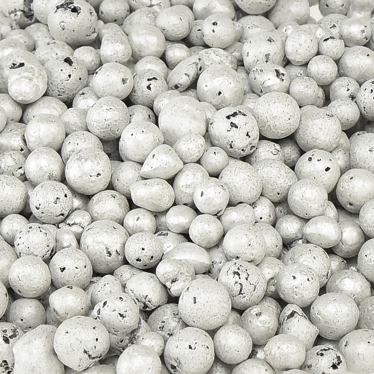 Sie erhalten die Brillant-Dekoperlen in Weiß in einer Kunststoff-Tüte mit einer Füllmenge von 1 Liter. Die einzelnen Kügelchen messen circa zwischen 4 und 8 Millimetern.