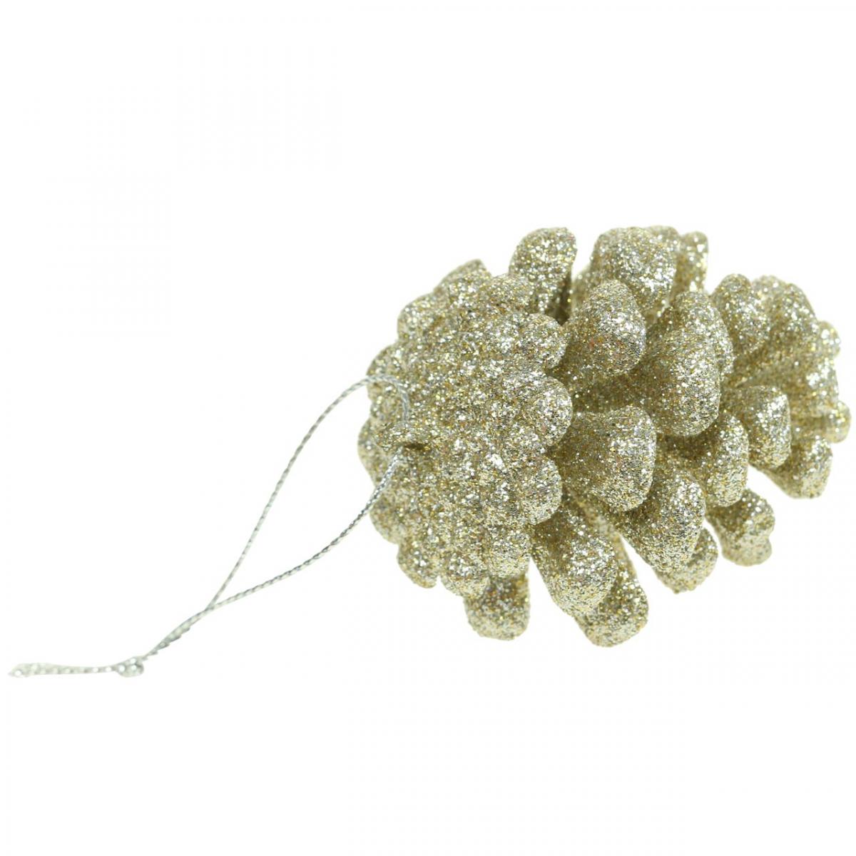 Christbaumschmuck Deko Zapfen Glitter Champagner H7cm 6 St