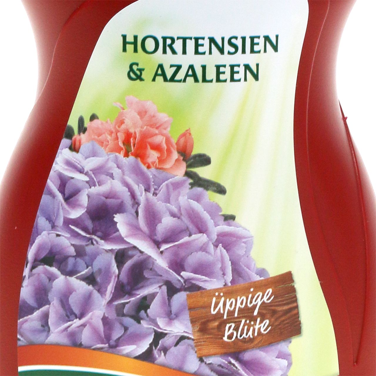 Verwenden Sie zum Gießen am besten nach Möglichkeit Regenwasser und mischen Sie 1 Liter davon mit einer halben Verschlusskappe des Flüssigdüngers für Azaleen oder eine ganze Kappe für Hortensien. Begießen Sie dann einmal wöchentlich die Blumen mit dem Gemisch aus hochwertigem Pflanzendünger und freuen Sie sich über die kräftige Blüte!