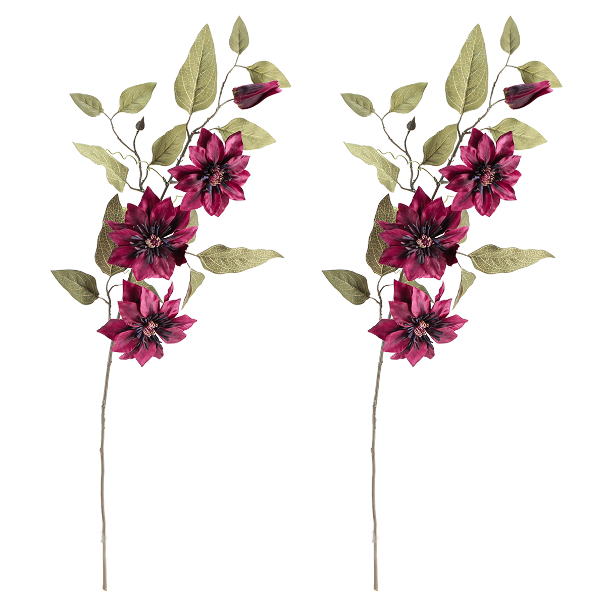 Produktname: Clematis künstlich 3 Blüten Kunstblumen Bordeaux 81cm 2St