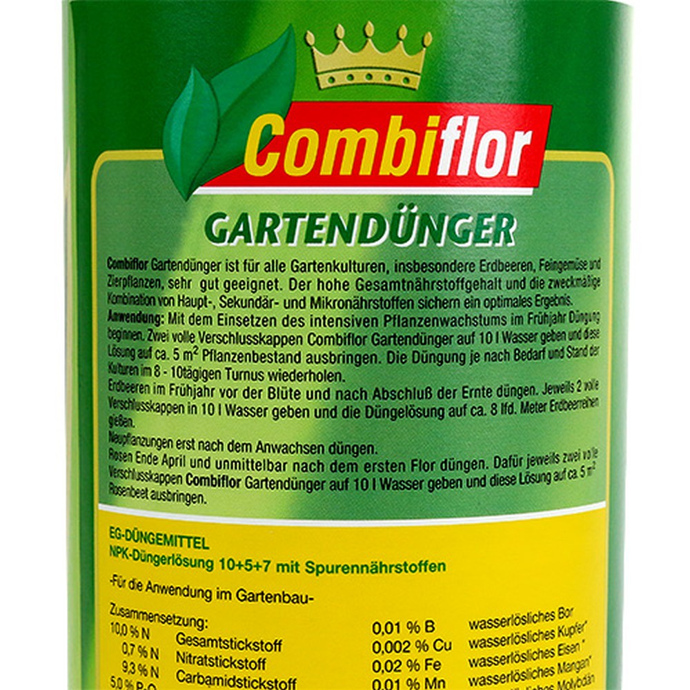 Damit ist der Combiflor® Flüssigdünger ein Universaldünger, der Ihren ganzen Garten versorgt und in voller Pracht erstrahlen lässt! Dazu müssen Sie lediglich zwei volle Verschlusskappen auf 10 Liter Gießwasser geben und mit der Mischung direkt die Wurzeln Ihres Pflanzenbestandes begießen.