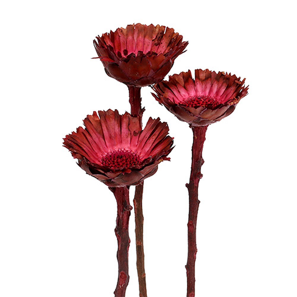 Die Compacta Rosette in der dunkelroten Farbe einer Erika befindet sich zu insgesamt 40 einzelnen Stück in einem Beutel. Die getrockneten Naturprodukte haben unterschiedliche Größen zwischen 26 bis 30 Zentimetern, wobei die Blütenköpfe auch einen Durchmesser zwischen 4 und 6 Zentimeter besitzen. Sie können Sie einzelne Trockenblumen aber auch als Streudeko auf Ihren Tisch legen oder sogar die Blüten von ihren Stielen für Collagen und weiteren Bastelideen entfernen.