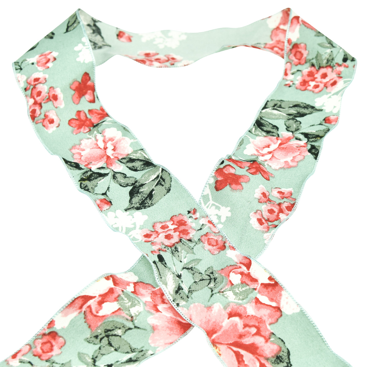 Produktname: Geschenkband Blumen Stoffband Türkis Rot 40mm 15m