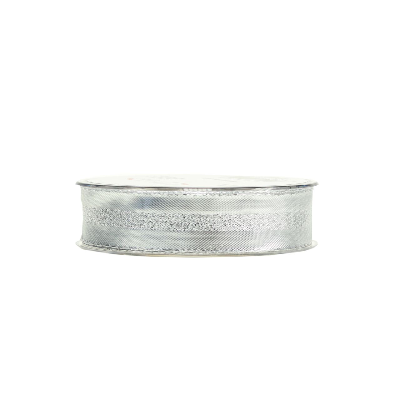 Produktname: Deko Band Silber mit Streifen 25mm 20m