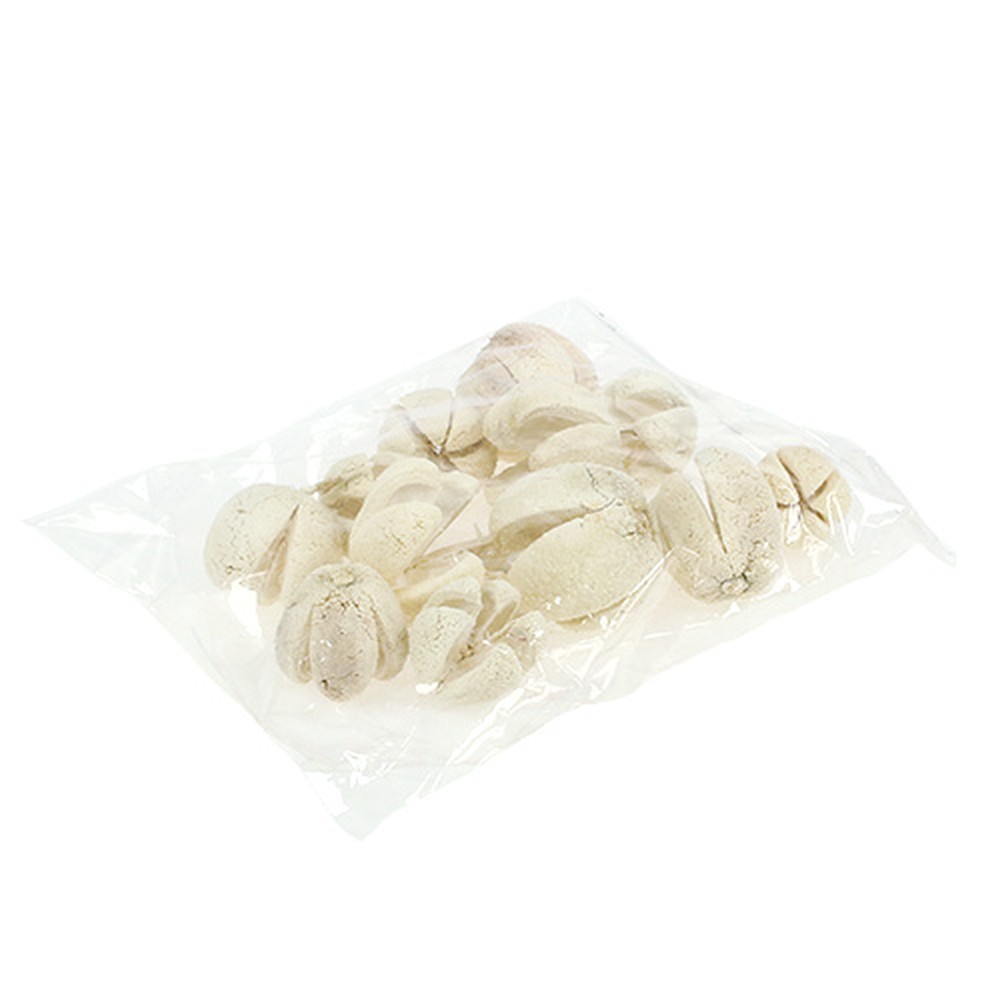 Die gebleichte Bullet Flower wird in einem Beutel zu insgesamt 12 Stück geliefert. Als Naturprodukt hat jede Trockenfrucht unterschiedliche Größen. So kann die Frucht zwischen circa 3 und 6 Zentimeter lang sein und einen Durchmesser von circa 3,5 bis etwa 7 Zentimeter besitzen.