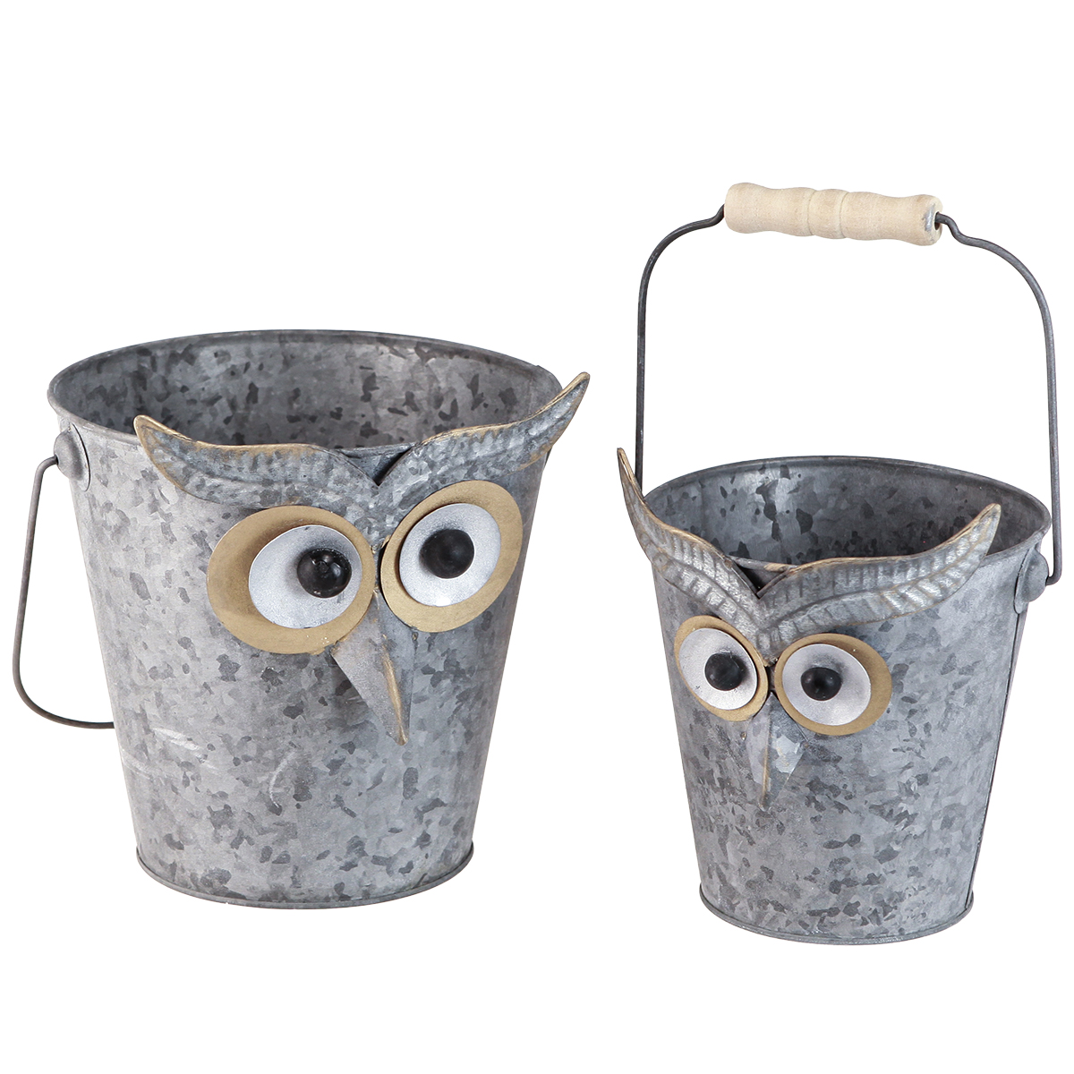 Deko Eimer Eule Übertopf Zink mit Henkel Ø15/19cm 2er-Set