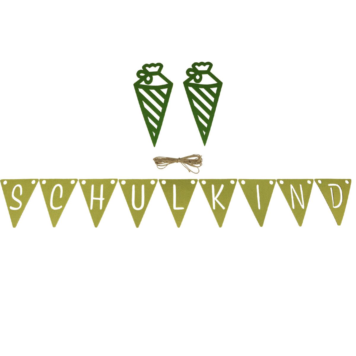 Produktname: Deko Einschulung Wimpelkette Girlande aus Filz Grün Hellgrün 295cm