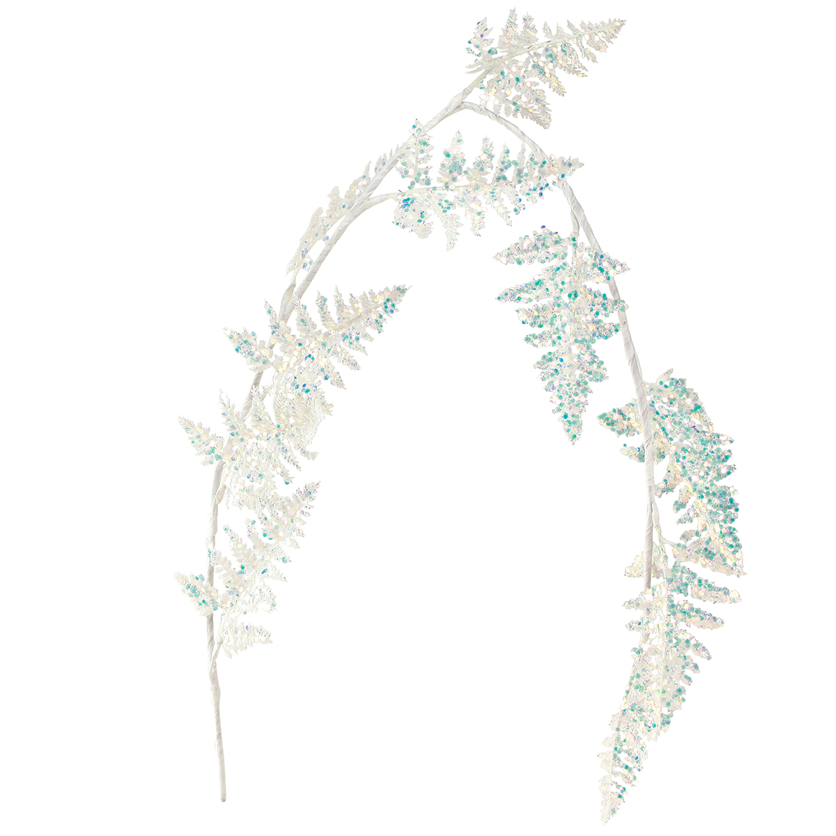 Produktname: Deko Farn zum Hängen Weiß Blau Glitzer Winter L110cm