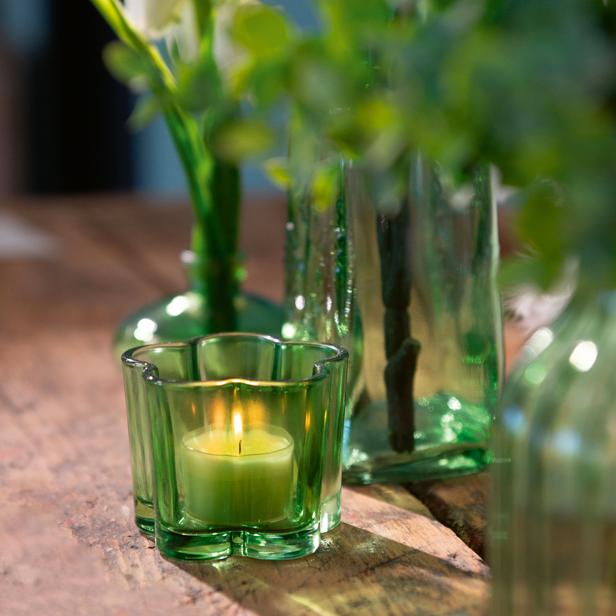 Grüner Teelichthalter aus Glas in Blütenform – stilvolle Akzente für Ihr Zuhause