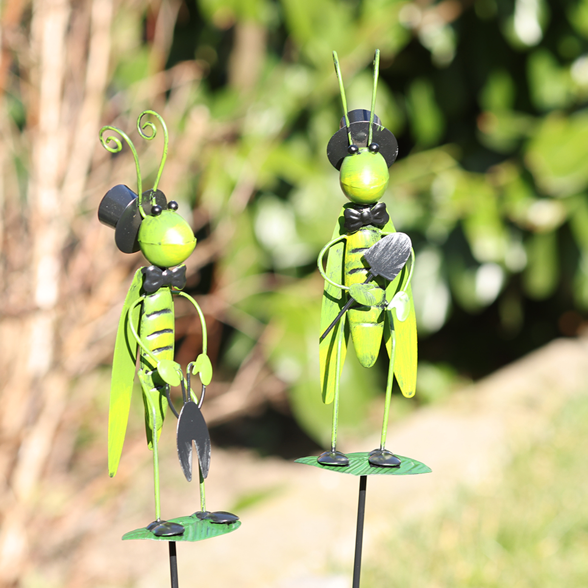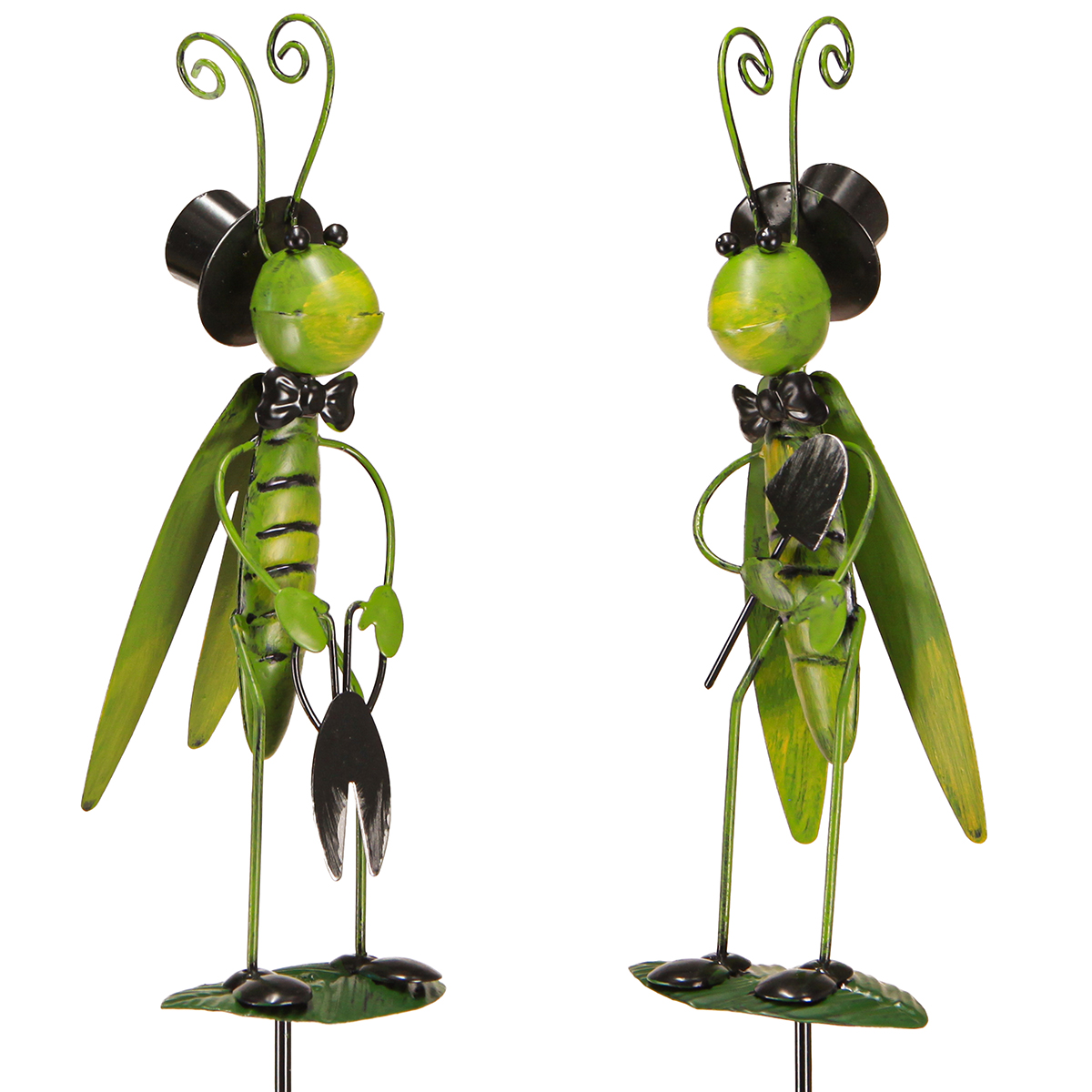 Deko Grashüpfer am Stab Gartendeko Metall Sortiert 77cm 2St