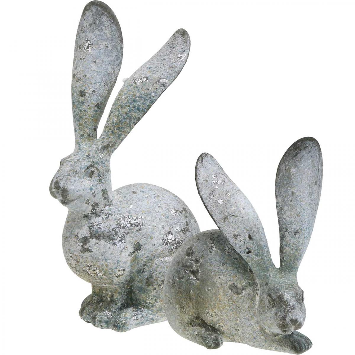 Produktname: Deko-Hase, Gartenfigur in Beton-Optik, Shabby Chic, Osterdeko mit Silberakzenten H21/14cm 2er-Set