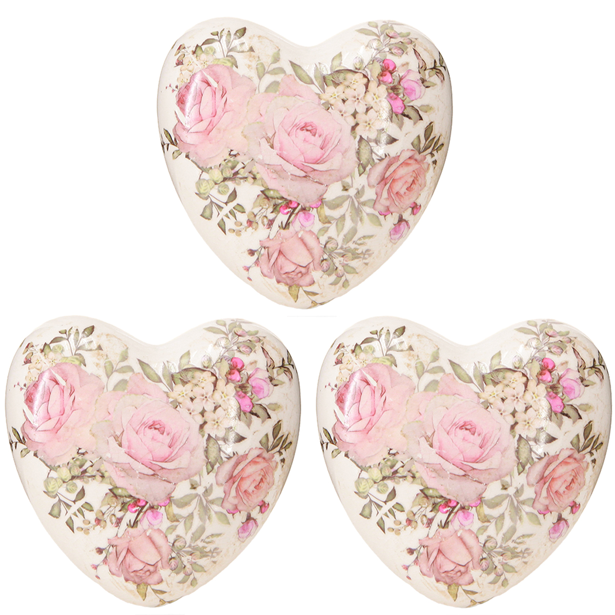 Deko Herzen mit Rose Keramik in Creme Rosa 8x8cm 3St
