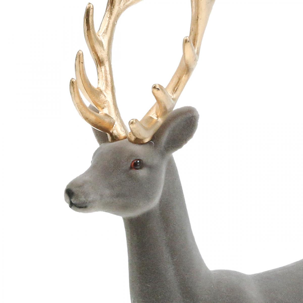 Deko Hirsch Dekofigur Deko-Rentier Beflockt Grau H37cm