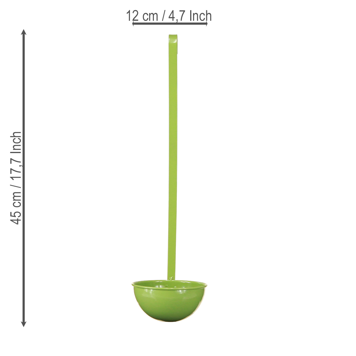 Was macht eine hängende Deko Kelle so besonders? Diese charmante grüne Suppenkelle verleiht jedem Raum das gewisse Etwas. Ob in der Küche, im Wohnzimmer oder sogar im Garten – sie zieht garantiert alle Blicke auf sich. Mit einer Länge von 45 cm ist sie ein auffälliges, aber stilvolles Accessoire, das klassische Funktionalität mit moderner Eleganz verbindet. Entdecken Sie, wie eine einfache Kelle aus Metall zu einem wahren Hingucker wird! Lust auf etwas Rustikales, das den Alltag verschönert? Die Deko-Kelle in Grün punktet mit originellem Design und praktischen Nutzungsmöglichkeiten: Ob als Aufbewahrung in der Küche, als dekorativer Blumentopfhalter oder als rustikale Wanddekoration im Wohnzimmer. Dabei kombiniert die leuchtend grüne Farbe Frische und Natürlichkeit. Perfekt für jeden, der das Besondere liebt!