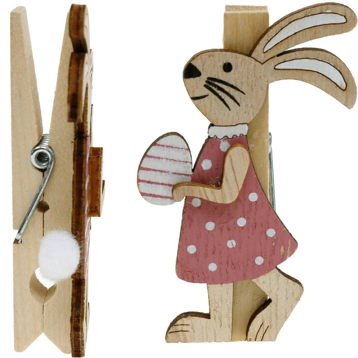 Produktname: Deko-Klammern Hasen Osterhasen Rosa, Weiß Holz Osterdeko 4St