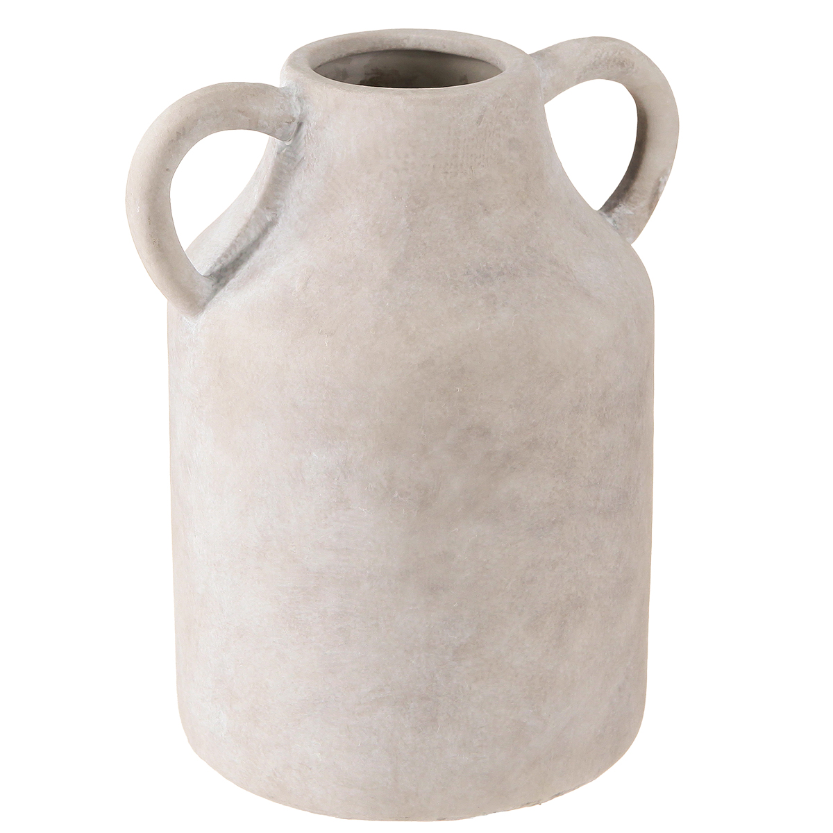 Der Deko-Krug und Übertopf aus Keramik in Beige ist das perfekte Accessoire, um Ihren Wohnräumen das gewisse Etwas zu verleihen. Mit einem Durchmesser von etwa 14,5 cm und einer Höhe von etwa 22 cm fügt sich dieses stilvolle Stück nahtlos in jede Einrichtung ein und bietet vielseitige Dekorationsmöglichkeiten. Die zwei kurzen Henkel im rustikalen Stil verleihen dem Krug eine zeitlose Eleganz, die sowohl moderne als auch klassische Einrichtungsstile bereichert. Das beige, weiß gewaschene Finish dieses Henkelkrugs bringt eine sanfte, unaufdringliche Farbpalette in Ihr Zuhause und macht ihn ideal für Trockenblumenarrangements. Sein charmantes, rustikales Design ist perfekt für den Einsatz als Tischdeko für Frühling und Sommer geeignet. Möchten Sie echte Pflanzen einsetzen, versehen Sie den Krug vorher mit einer Folie und befüllen Sie den Boden mit einer Drainage aus Kies oder Blähton, um Staunässe zu vermeiden. Dieser Keramikkrug ist ein hervorragendes Beispiel dafür, wie traditionelle Handwerkskunst mit moderner Ästhetik kombiniert werden kann.