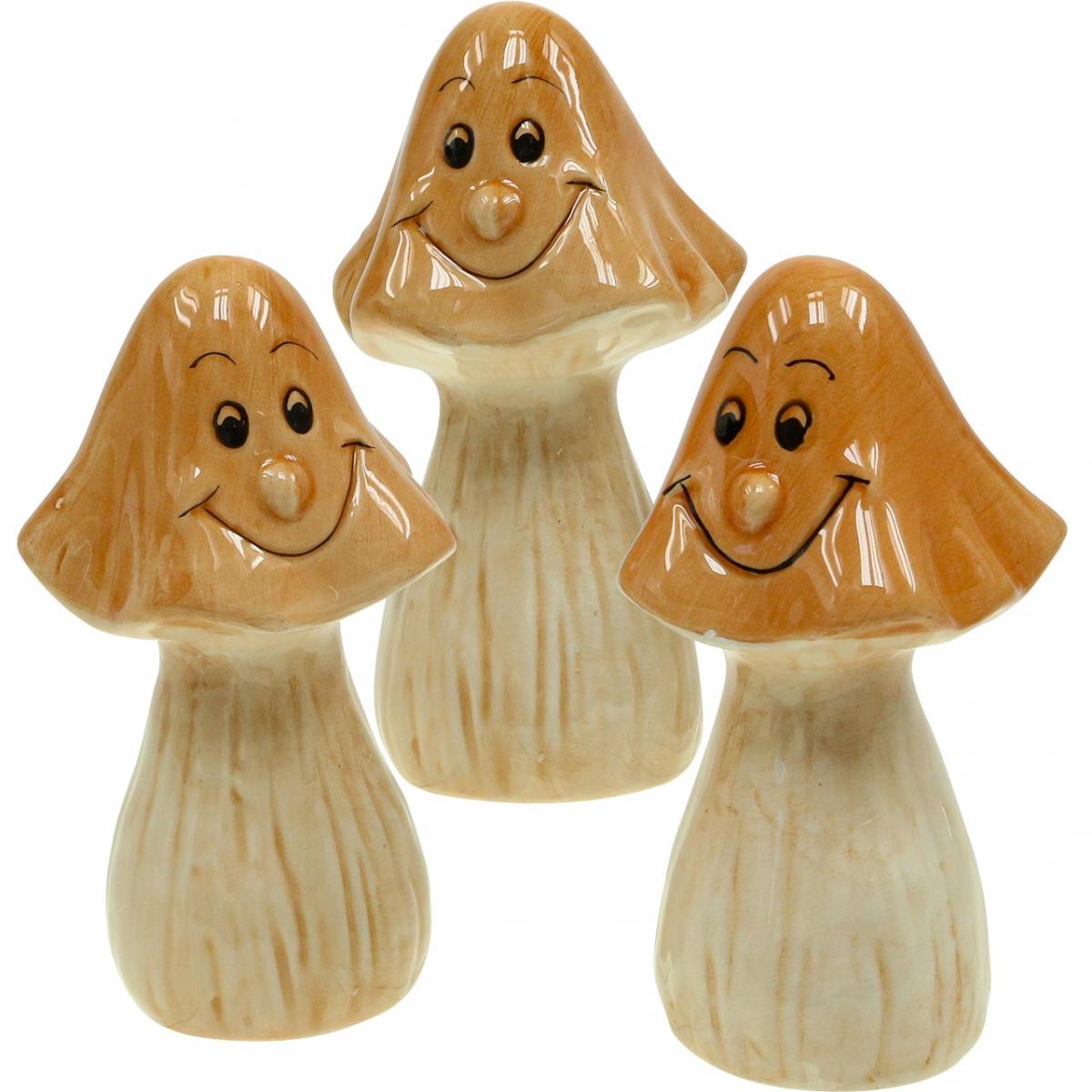 Produktname: Deko Pilze Keramik Braun Herbstdeko Figuren Ø6cm H10,5cm 3 St
