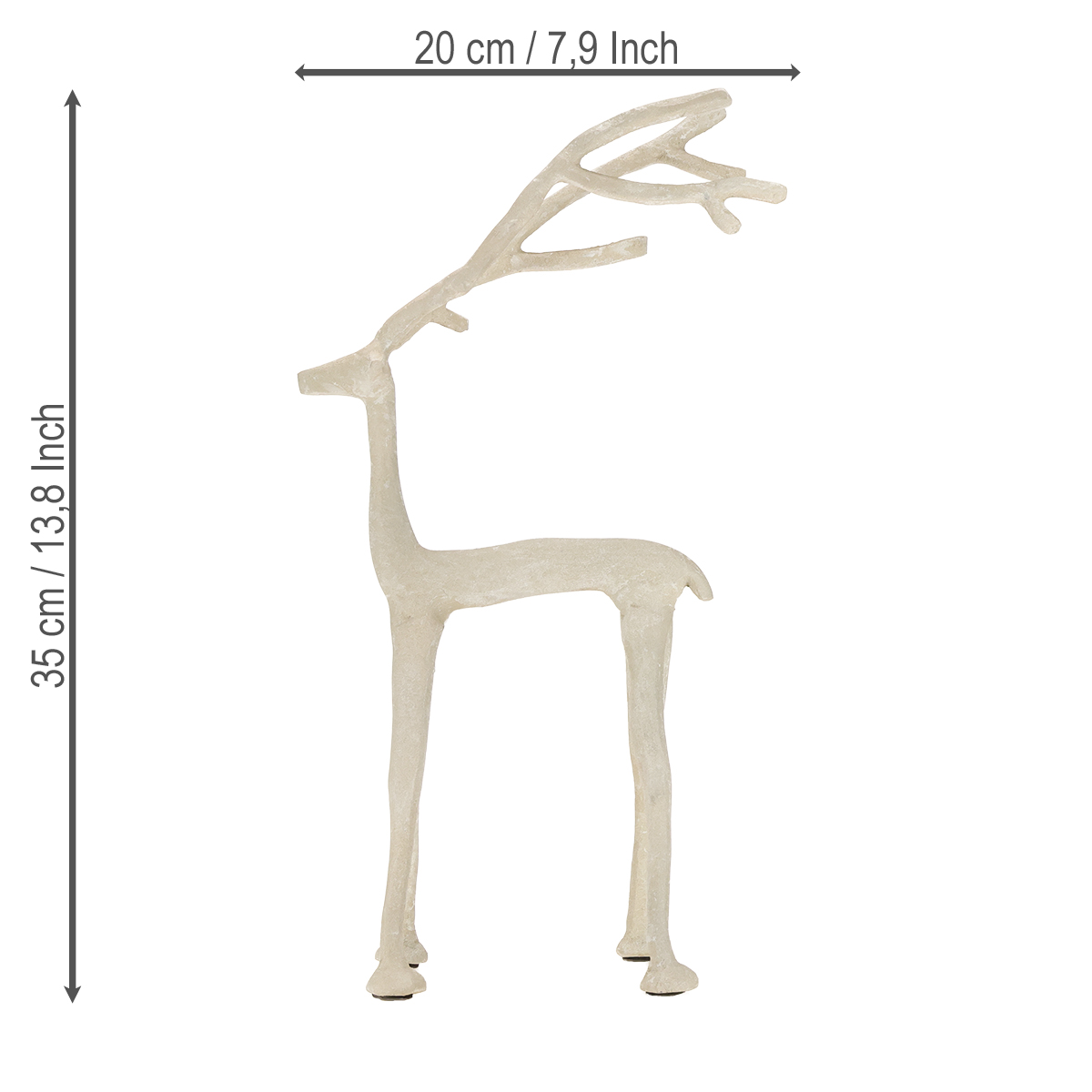 Entdecken Sie die kunstvoll gestaltete Figur, die durch ihre grau-beige Ton-Optik zu fast jeder Einrichtung passt. Unser Rentier aus hochwertigem Metall überzeugt nicht nur durch seine stabile Bauweise, sondern auch durch seine Liebe zum Detail. Die besondere Lackierung verleiht der Figur eine moderne, minimalistische Anmutung – ideal für Fans des zeitgenössischen oder skandinavischen Stils und somit das perfekte Accessoire für alle, die schlichte, aber wirkungsvolle Dekoration schätzen. Und das Beste? Dank der schonenden Kunststofffüße bleibt jeder Untergrund geschützt. Einfach toll in Kombination mit Naturmaterialien wie Holz oder Grünpflanzen! Wer es etwas natürlicher mag, kann die Figur auch im Empfangsbereich auf einer Kommode platzieren und so Besucher schon beim Betreten Ihres Heims begrüßen. Ergänzen Sie Ihre Festtagsdekoration mit weiteren Artikeln von Floristik24, wie unseren stilvollen Kerzenhaltern oder dem Adventskranz. So entsteht ein stimmiges Gesamtbild, das Schönheit und Funktionalität vereint.