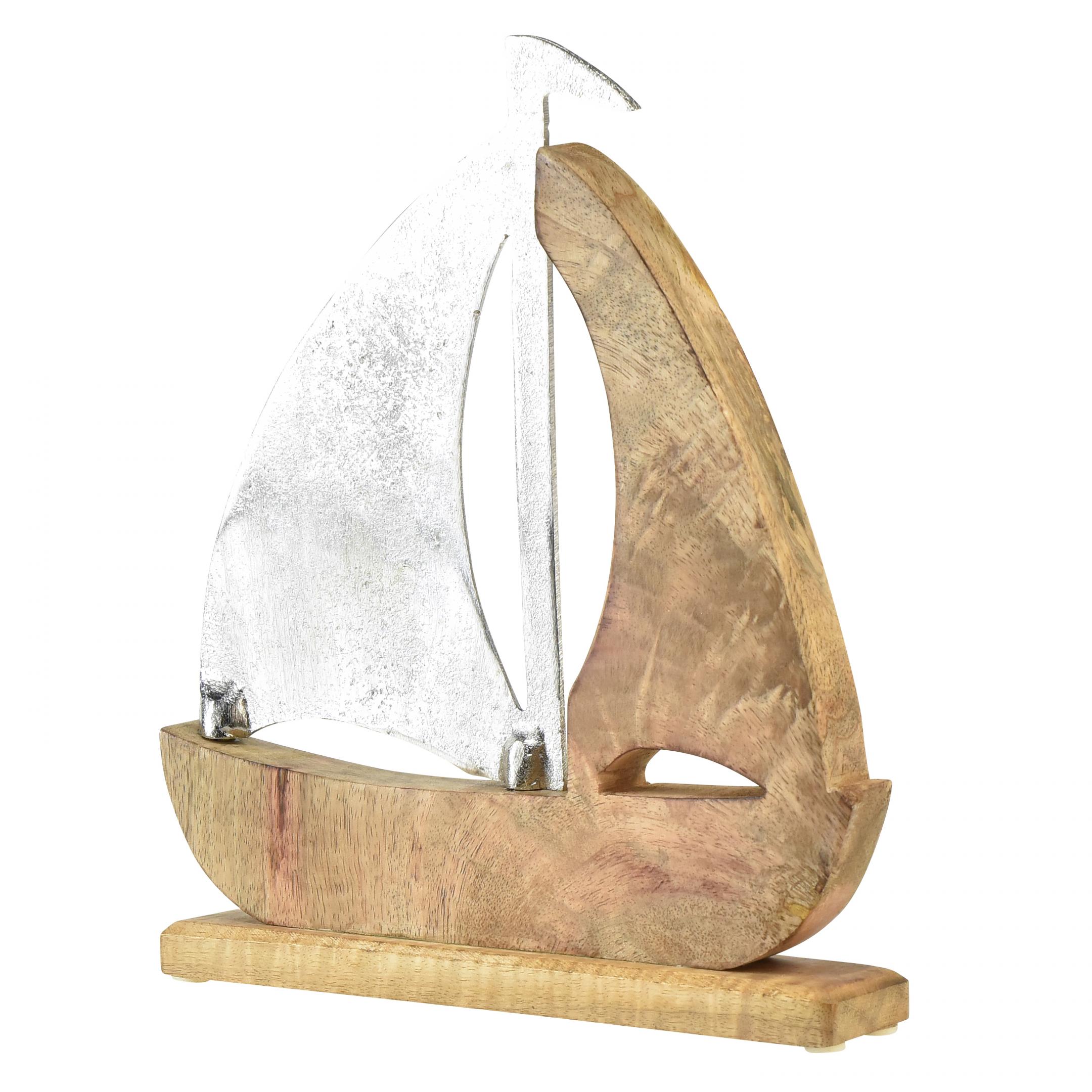 Deko Schiff Holz Metall Silber Mangoholz 16,5x4x18,5cm