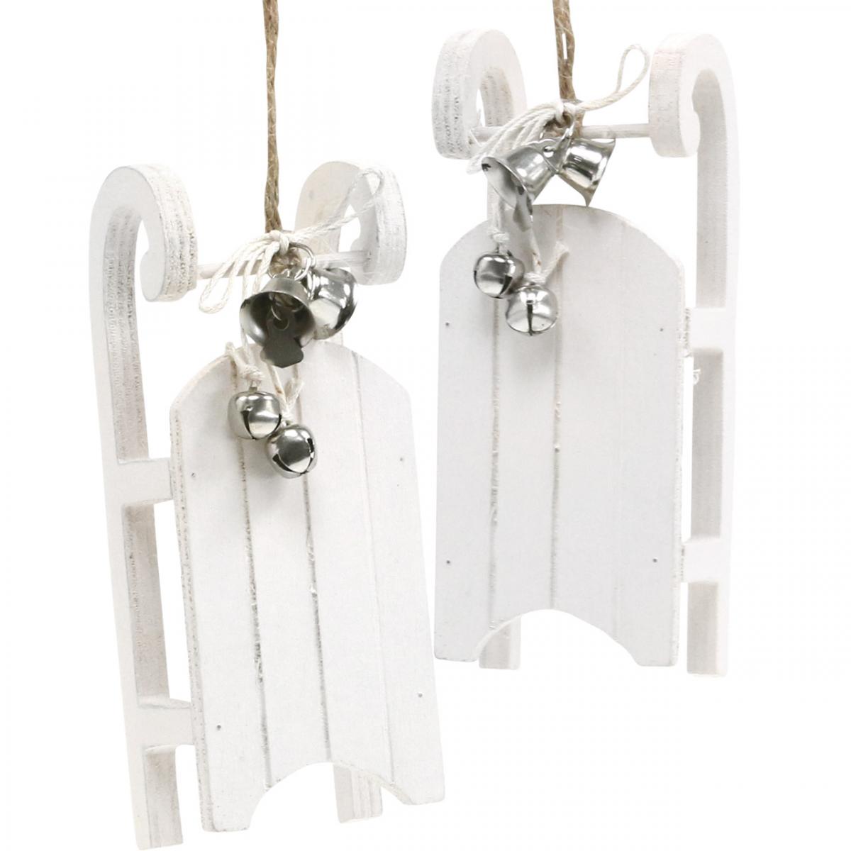 Deko Schlitten Weiß Silbern mit Glöckchen Kordel L13cm 4 St