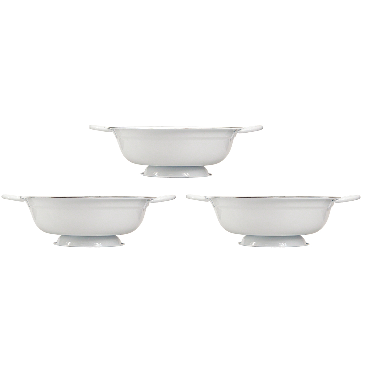 - Drei Metallschüsseln in Weiß/Schwarz, VIntage-Design