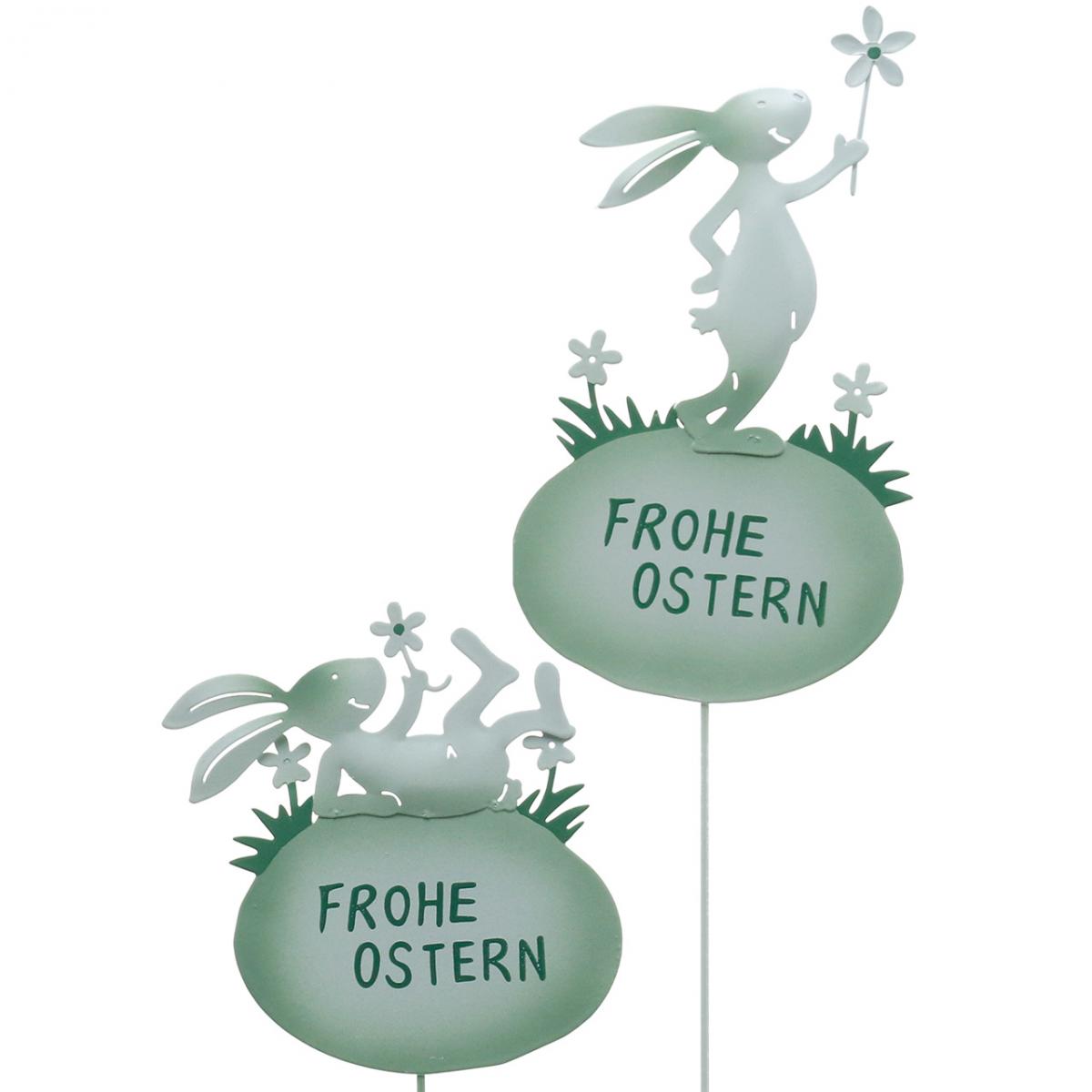 Produktname: Deko-Stecker Ostern Hase Metall Grün Osterhasen Osterdeko 4 St