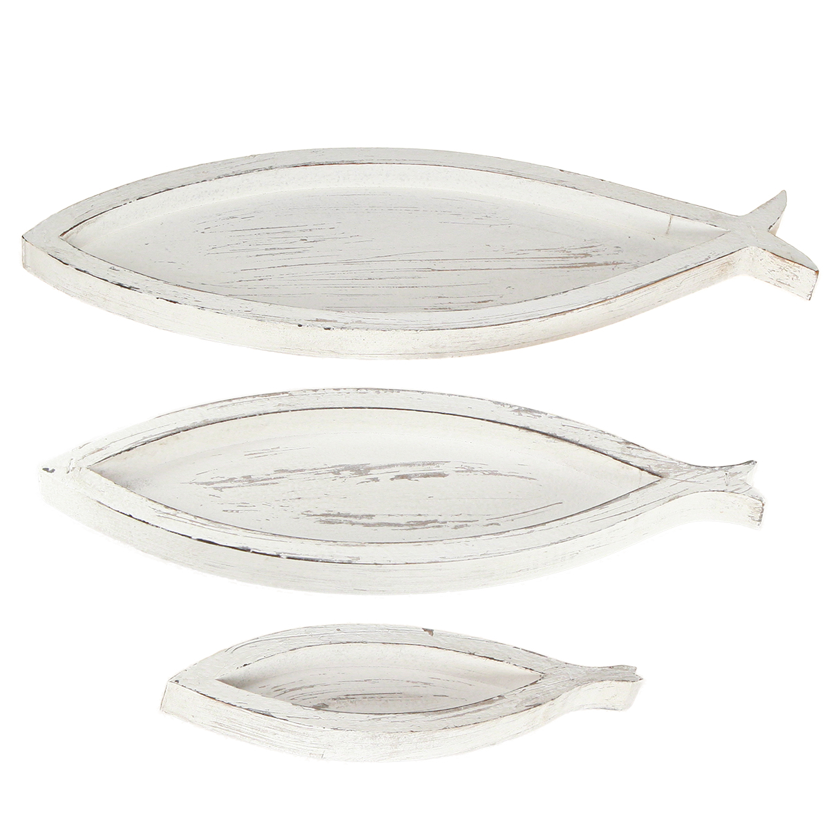 Deko Tablett Holz Fisch Weiß Natur L30/40/50cm Set 3St