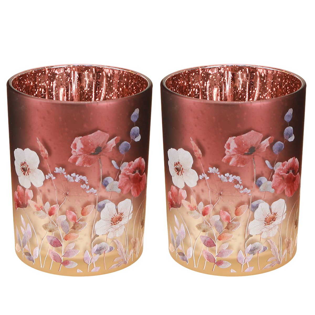 Deko Windlicht Glasmotiv Blütendesign für elegante Wohnakzente 12,5cm 2St