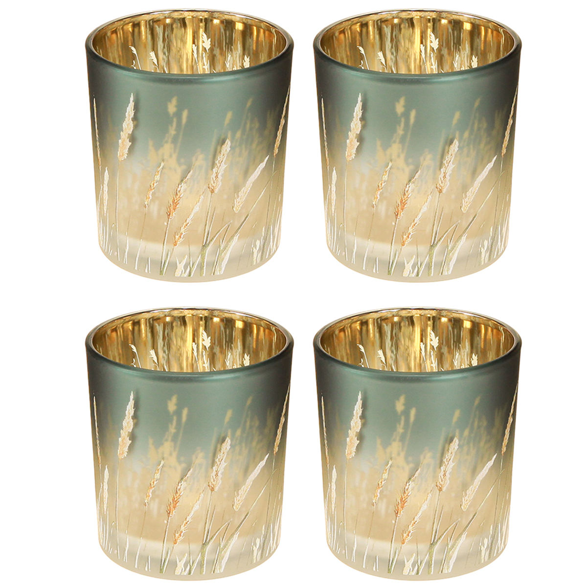 Deko Windlicht Glasmotiv Gräserdesign für stimmungsvolle Raumakzente blau 8cm 4St.